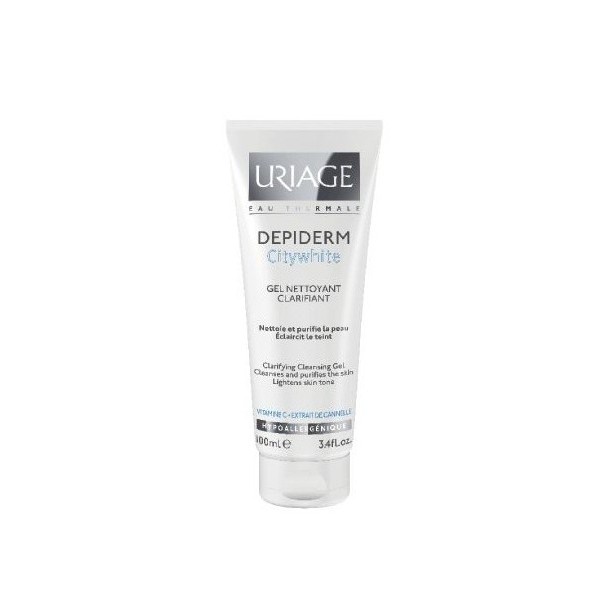 Uriage Dépiderm CityWhite Gel Nettoyant Clarifiant est un soin d’hygiène quotidien pour le visage. Premier geste essentiel qui prépare la peau aux soins Eclaircissants .Ce gel nettoie et purifie la peau en douceur en éliminant toutes les impuretés qui ternissent le teint.