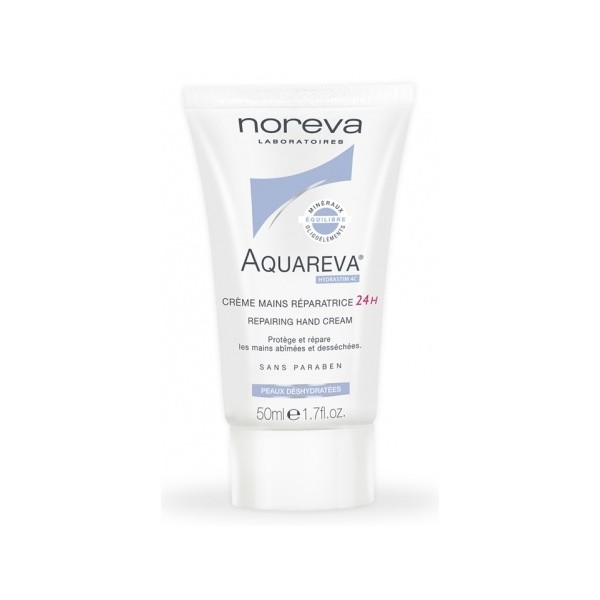 Aquareva® Crème mains réparatrice 24 H formulée spécialement pour les peaux déshydratées.