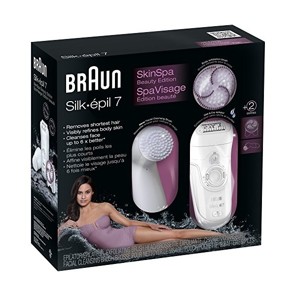 Braun Silk-épil 7 Epilateur SkinSpa 7951 Wet & Dry + Brosse exfoliante le meilleur système d'épilation et d'exfoliation 2-en-1.