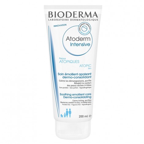 Application | Appliquez généreusement Bioderma Atoderm Intensive Soin 1 à 2 fois par jour sur la peau du visage ou du corps préalablement nettoyée. |