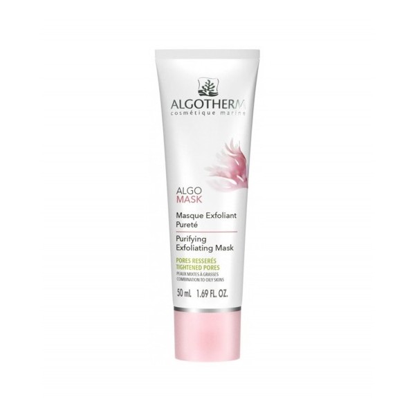 Algo Mask masque exfoliant pureté Algotherm est un soin 2-en-1 qui exfolie, purifie les peaux mixtes à grasses, et resserre les pores, Il absorbe les sécrétions sébacées et désincruste les pores, Le grain de peau est affiné, les pores sont resserrés, la peau est lissée et plus douce, TESTE SOUS CONTRÔLE DERMATOLOGIQUE - SANS PARABENE - SANS PHENOXYETHANOL