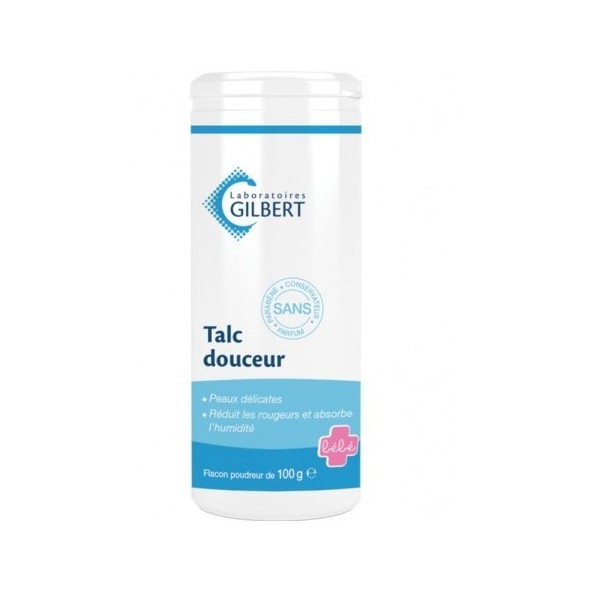 Produit | Le Talc douceur est indiqué pour l'hygiène et le soin de la peau de bébé. Grâce à ces propriétés adoucissantes et absorbantes, le talc douceur aide à réduire les frottements et les rougeurs. Il laisse un film protecteur sur la peau de bébé, l'humidité est absorbée. |
